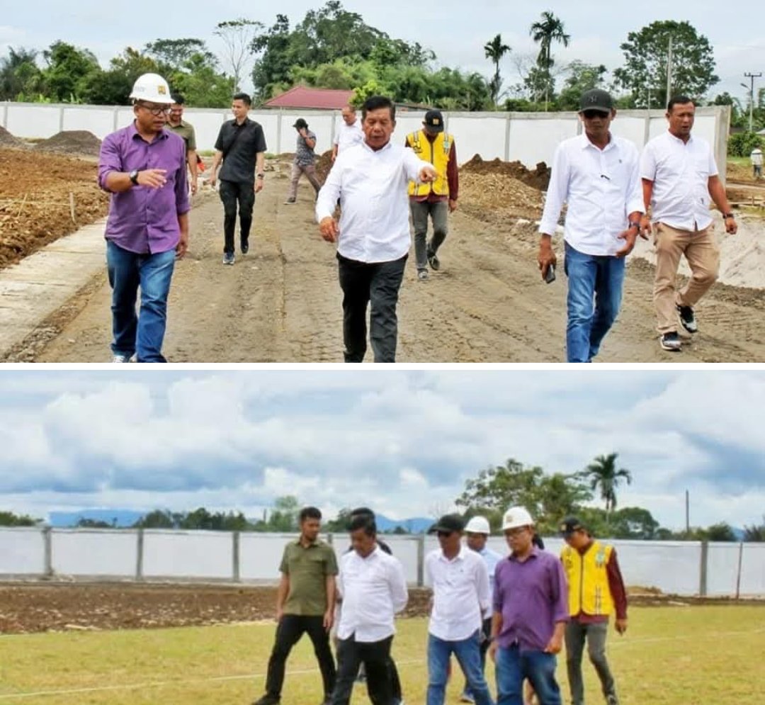 Jenews.id l Simalungun, Bupati Simalungun Radiapoh Hasiholan Sinaga didampingi Kepala Dinas PUTR Hotbinson Damanik meninjau progres pembangunan Stadion Mini Simalungun, yang berada di Pamatang Raya, Sumut, Senin (16/12/2024).