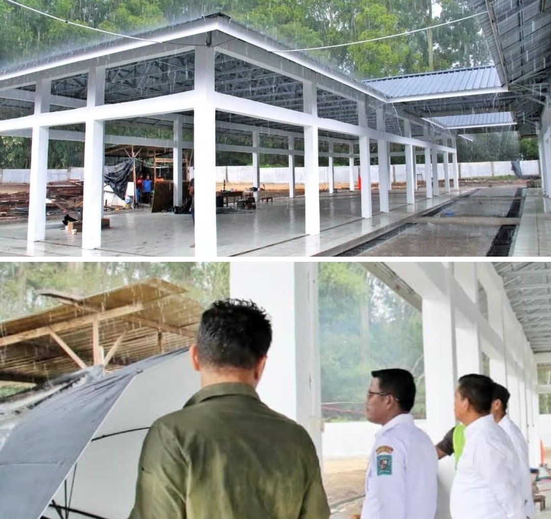 Dilokasi pembangunan pasar tersebut, Bupati melakukan pengecekan setiap sudut dari bangunan dengan teliti untuk memastikan semuanya berjalan sesuai rencana bangunan.