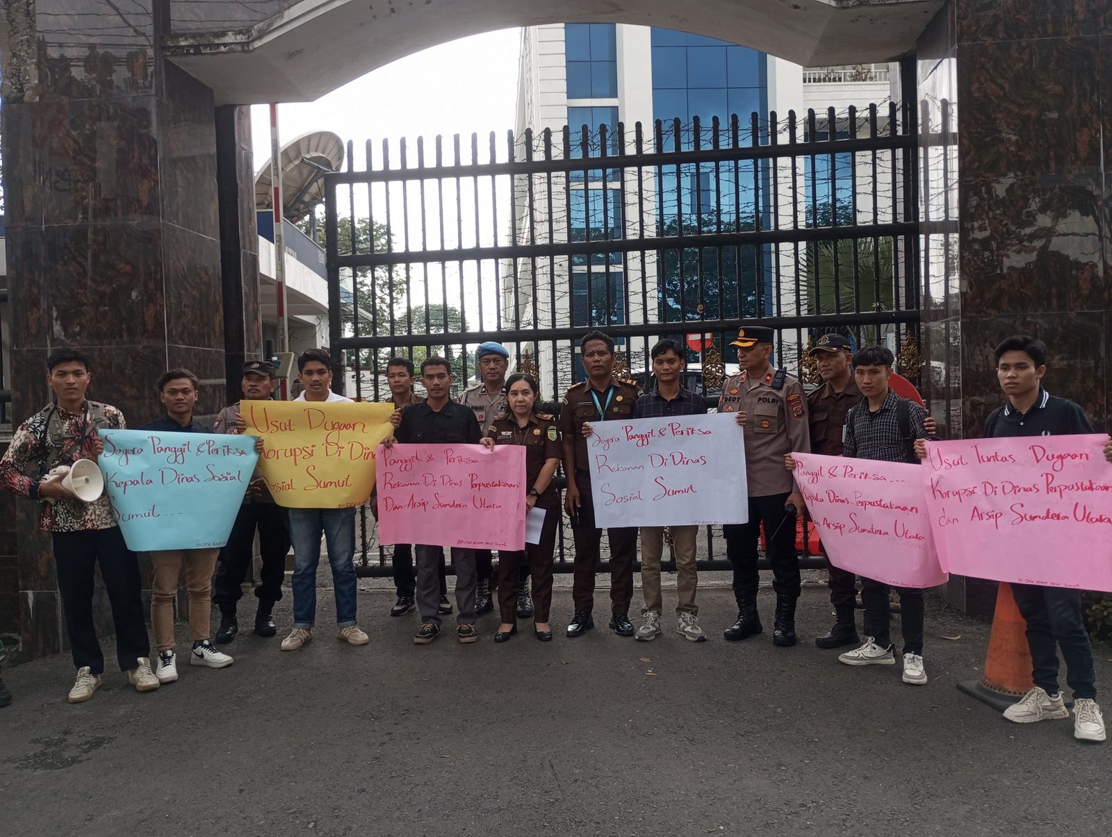 2. Mendesak Kejati Sumatera Utara agar segera memanggil dan memeriksa Kepala Dinas Perpustakaan dan Arsip Sumatera Utara dan Kepala Dinas Sosial Sumatera Utara terkait dugaan korupsi tersebut di atas.