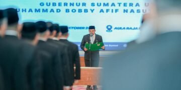 GUNUNGSITOLI l Jenews.id – Gubernur Sumatera Utara (Gubsu), Muhammad Bobby Afif Nasution, melantik sebanyak 177 pejabat Administrator dan Pengawas, Rabu (8/10/2025).