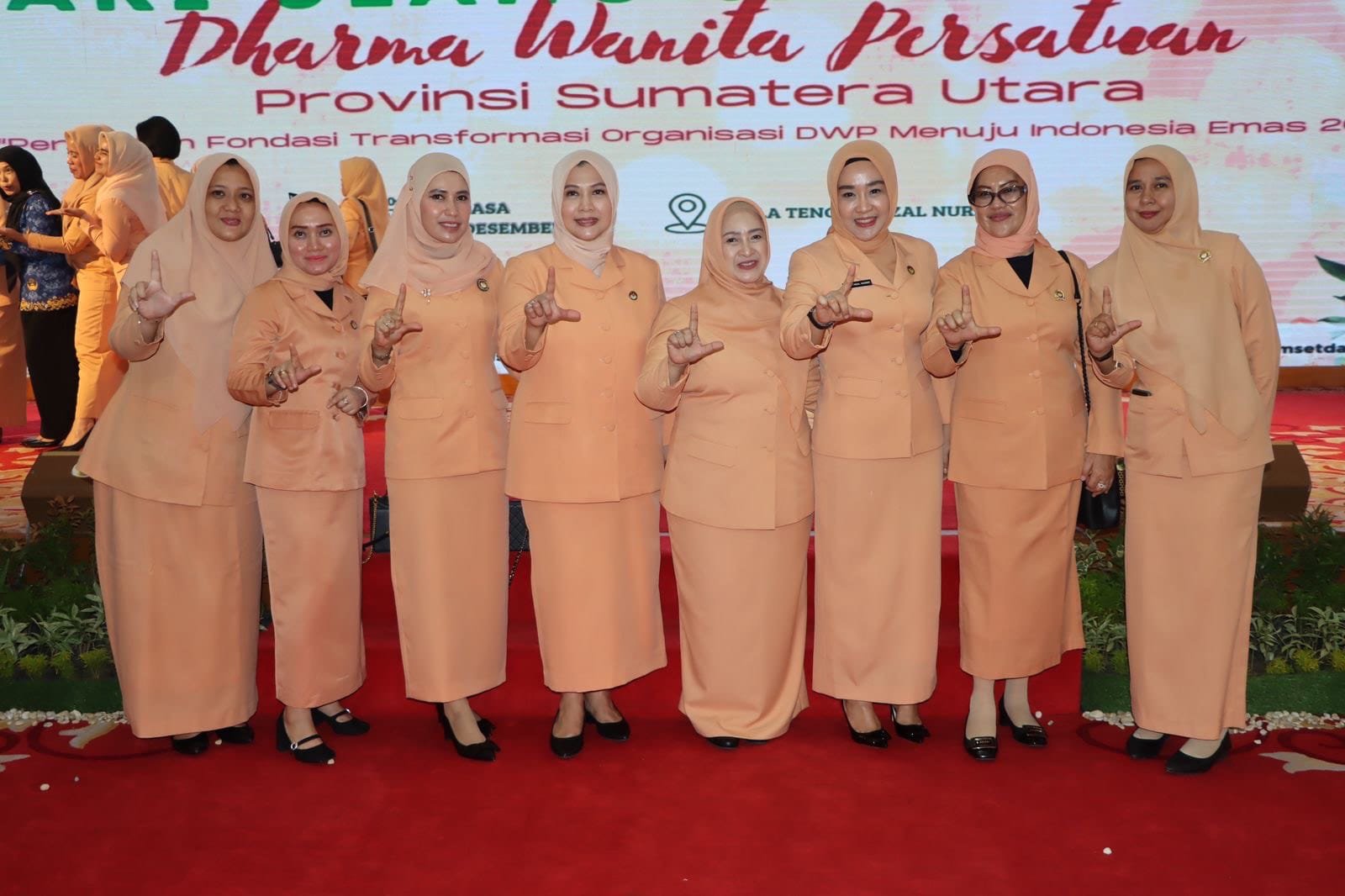 Acara yang berlangsung meriah ini turut dihadiri oleh Penjabat (Pj.) Gubernur Sumatera Utara, Agus Fatoni, beserta jajaran Forkopimda, serta pengurus DWP dari kabupaten/kota se-Sumatera Utara.