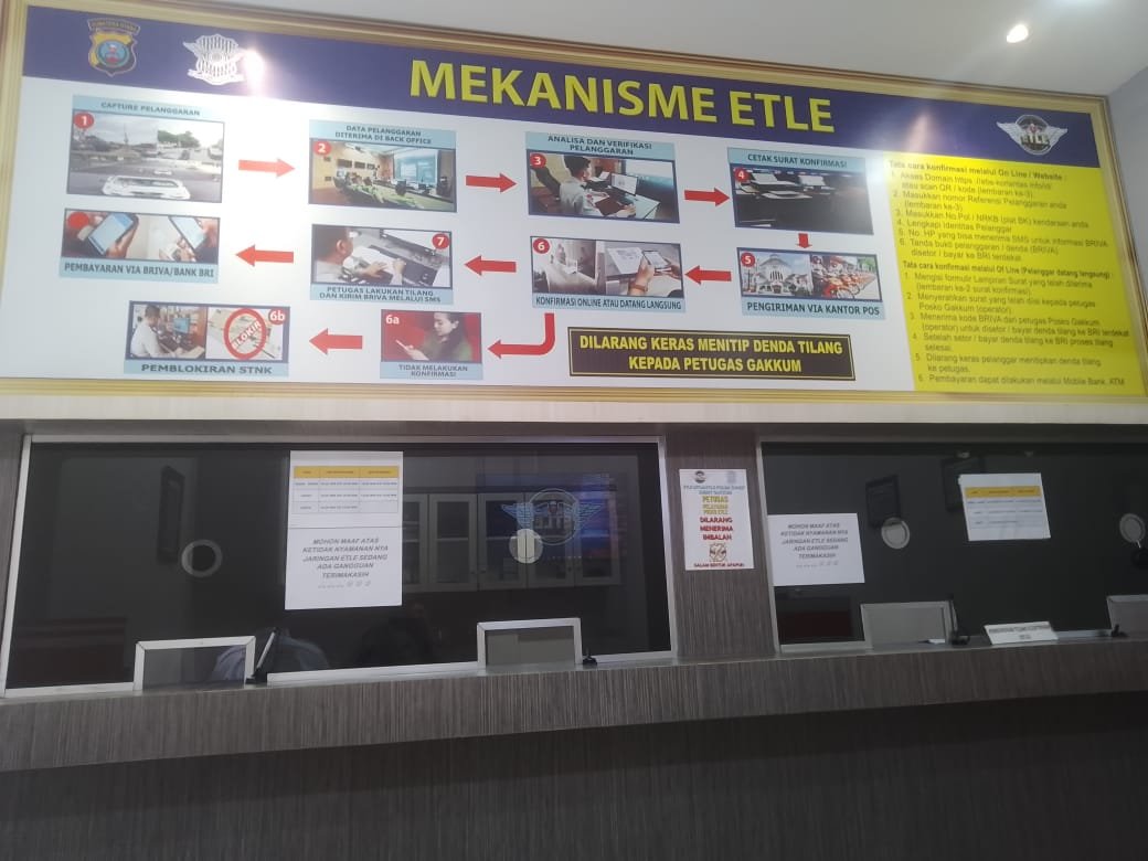 Terlihat beberapa orang mau membayar Etle yaitu Biro jasa,dan Pemilik langsung duduk didepan loket dan dibawah monitor LCD.