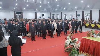 Pantauan wartawan, acara pelantikan dirangkai dengan serahterima jabatan pimpinan sementara DPRD Gunungsitoli kepada Adrianus Zega sebagai Ketua dan Ridwan Saleh Zega Wakil Ketua. (Yos)