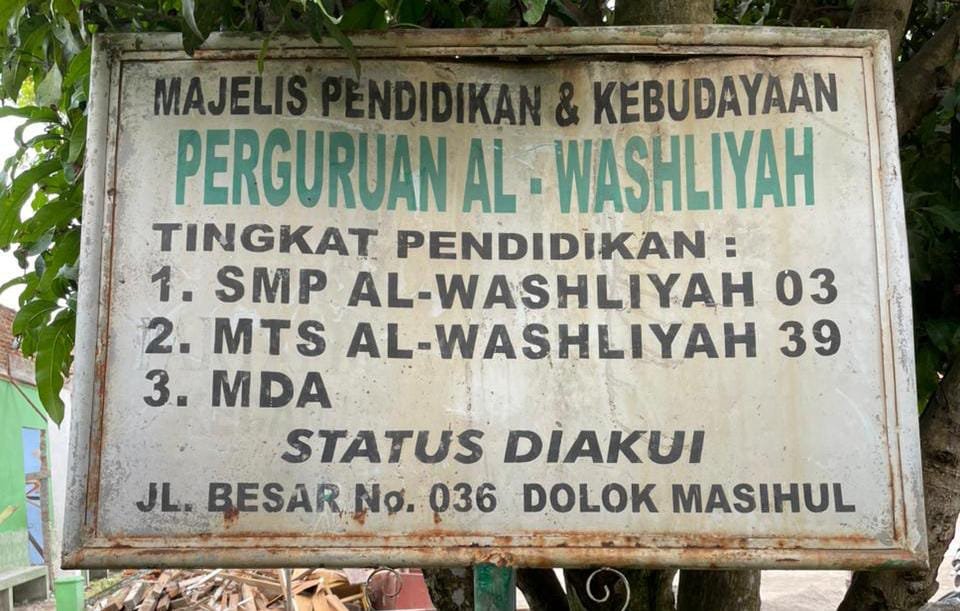 Terkait pemberitaan yang beredar, Kepala SMP 3 Al Washliyah Dolok Masihul menjelaskan bahwa plank masih proses percetakan dan pada hari senin akan dipasang.