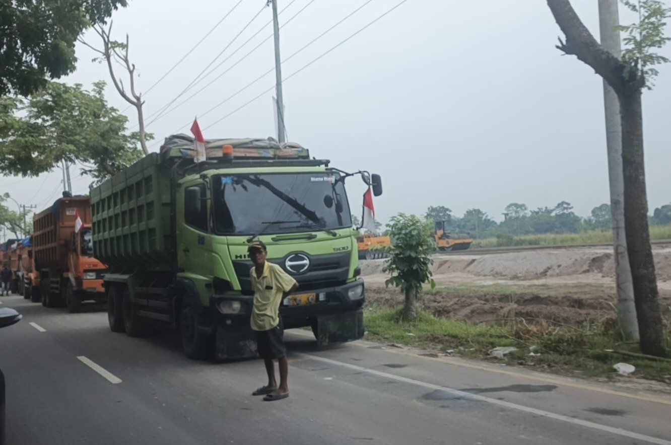 DELISERDANG | Jenews.id – Ratusan truk pengangkut tanah timbun untuk pembangunan proyek sport centre lokasi PON XXI Sumut-Aceh, dikerahkan untuk mempercepat pembangunan sejumlah venue.
