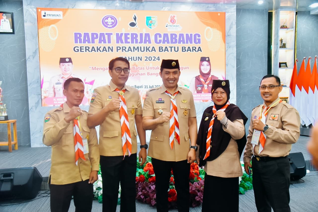 BATU BARA | Jenews.id – Pj. Bupati Batu Bara sekaligus Ketua Mabicab Pramuka H. Heri Wahyudi Marpaung, S.STP, M.AP., membuka rapat kerja Gerakan Pramuka Kwartir Cabang (Kwarcab) Batu Bara tahun 2024 di Aula Rumah Dinas Bupati, Komplek Inalum, Tanjung Gading, Kecamatan Sei Suka, Rabu (31/07/2024).