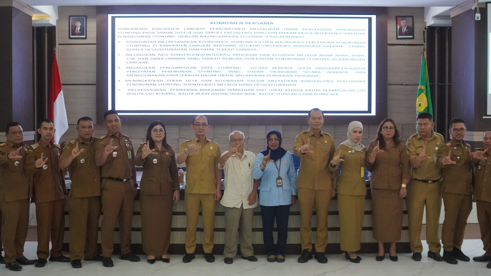 Kegiatan ini merupakan bagian dari implementasi tindak lanjut intervensi serentak Penanganan Stunting yang dilaksanakan pada Juni 2024 se-Sumatera Utara, dan berlangsung di Ruang Pola Bawah Kantor Bupati Langkat pada Senin pagi (5/08/2024).