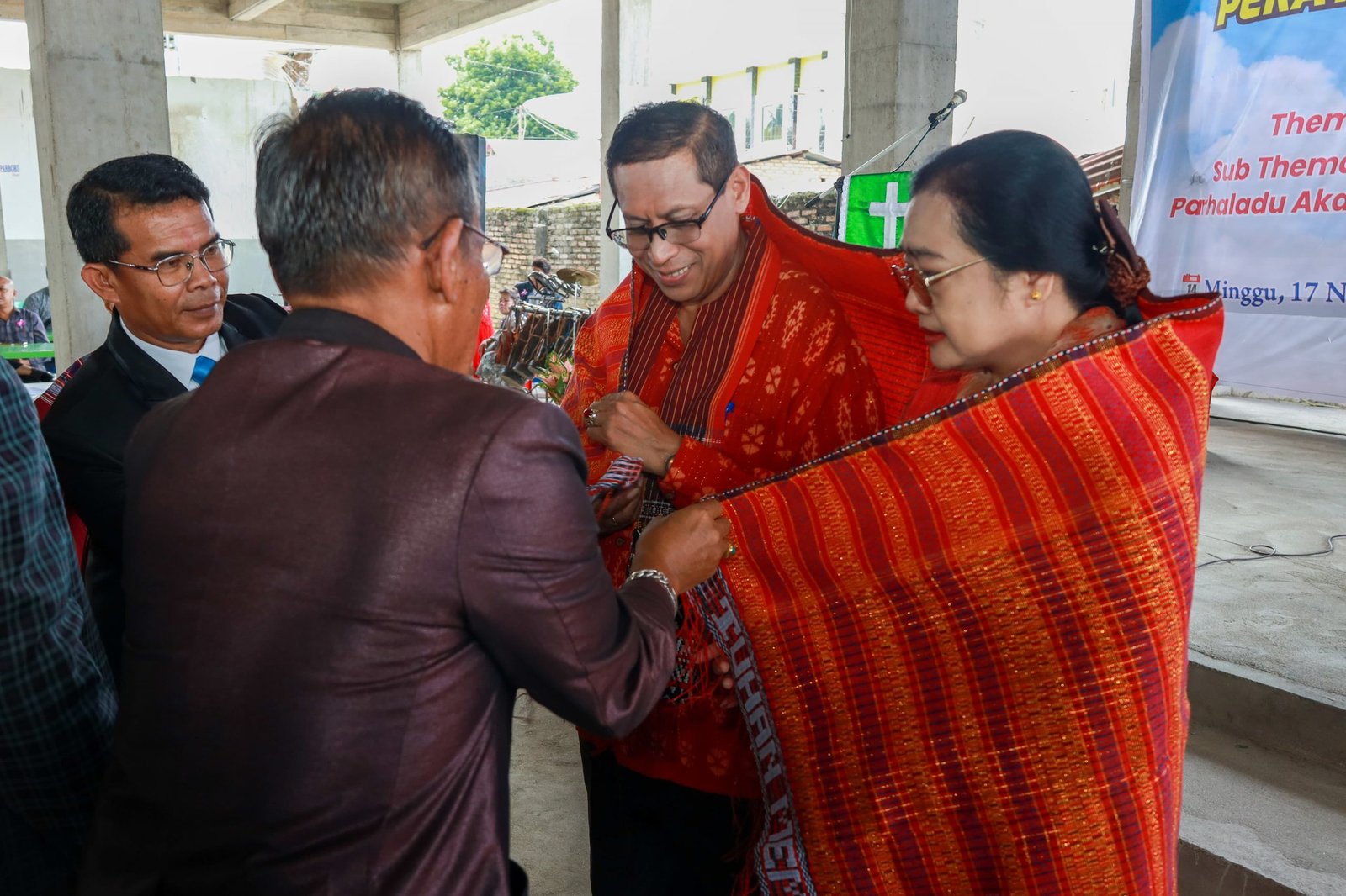 Pada kesempatan ini, Matheos menerima cenderamata berupa ulos dari Pendeta Resort HKBP Pardamean Pdt Jonny Simanjuntak STh, Ketua Umum Panitia Drs K Nainggolan MSi, serta Ketua Pelaksana sekaligus anggota DPRD Kota Pematangsiantar Ramses W Manurung. (Ril)