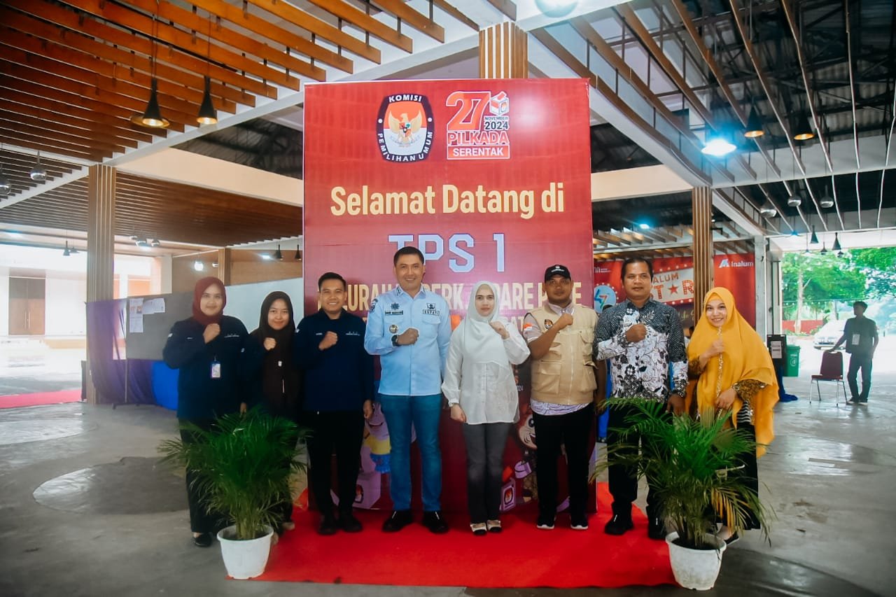 Batu Bara | Jenews.id, Penjabat Bupati Batu Bara H. Heri Wahyudi Marpaung, S.STP., M.AP., bersama Pj. Ketua TP PKK Ny. dr Febyriani Wahyudi menyalurkan hak pilihnya pada Pemilihan Kepala Daerah (Pilkada) 2024 di Tempat Pemungutan Suara (TPS) 1 Perkebunan Si Pare – Pare, Komplek Tanjung Gading, Kecamatan Sei Suka, Rabu (27/11/2024).