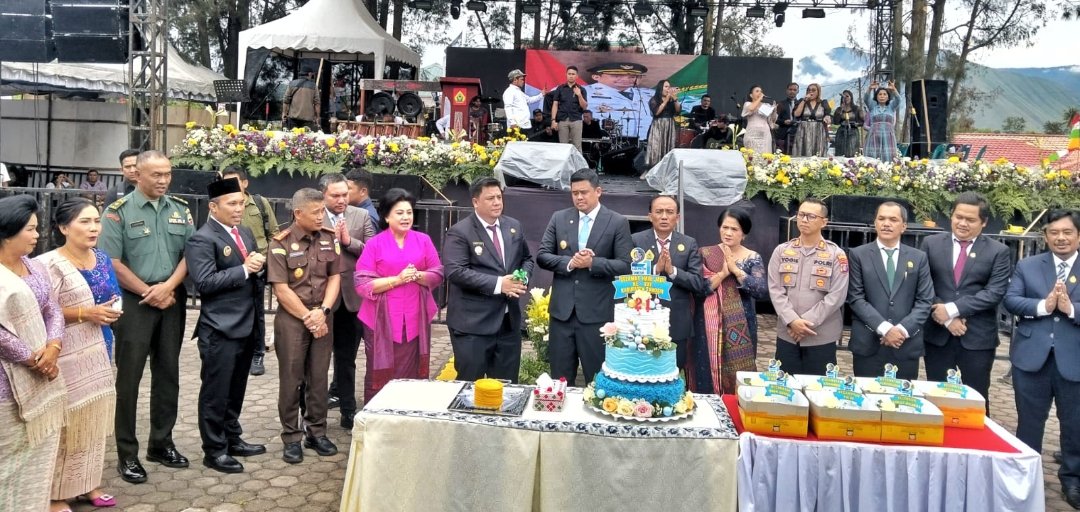 Tak hanya itu, Wakil Bupati Simalungun juga ikut serta dalam prosesi pemotongan kue ulang tahun sebagai simbol rasa syukur atas perjalanan panjang Kabupaten Samosir selama 21 tahun.